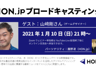 HON.jpブロードキャスティングは、本(HON)のつくり手をエンパワーする映像番組です。伝統的な取次&書店流通の商業出版からインターネットを活用したデジタルパブリッシングまで、広い意味での出版に関連する最新ニュースをゲストとともに深掘りします。1月10日のゲストはゲームデザイナーの山﨑剛さんです。Zoomウェビナー視聴とオンライン交流会の参加者を募集します。